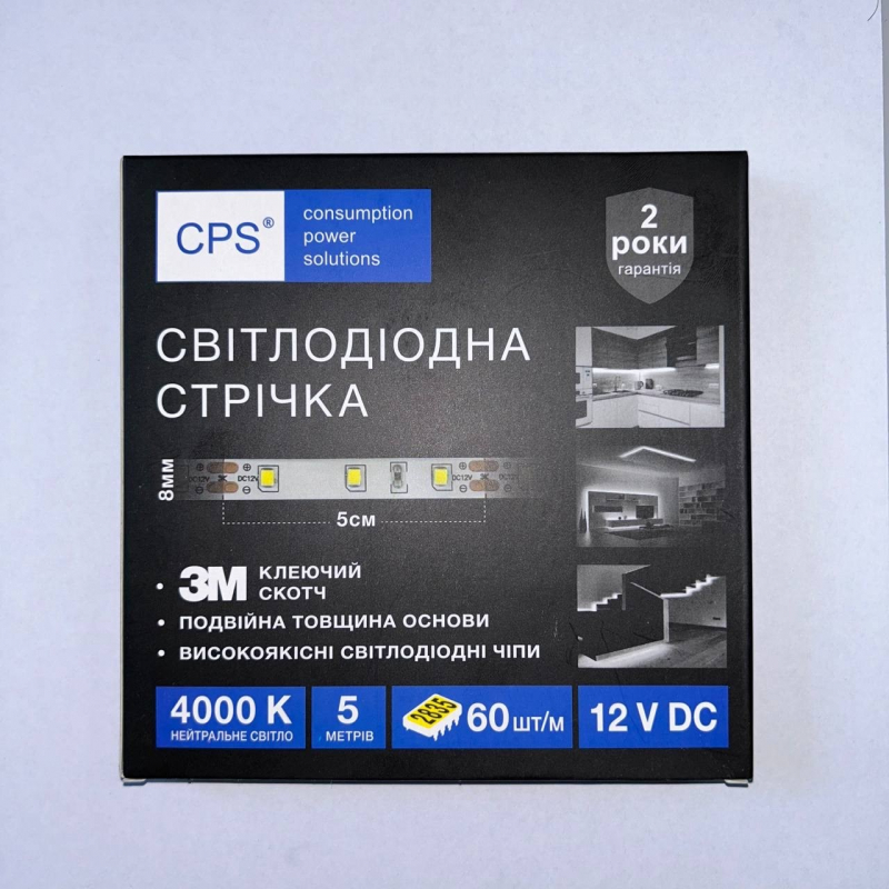 Длина – 5 м, шаг нарезки – 5 см., питание – 12V DC, Количество светодиодов 60 шт/м, 5 Вт/метр, цвет – 4000К (нейтральный свет), гарантия – 2 года.